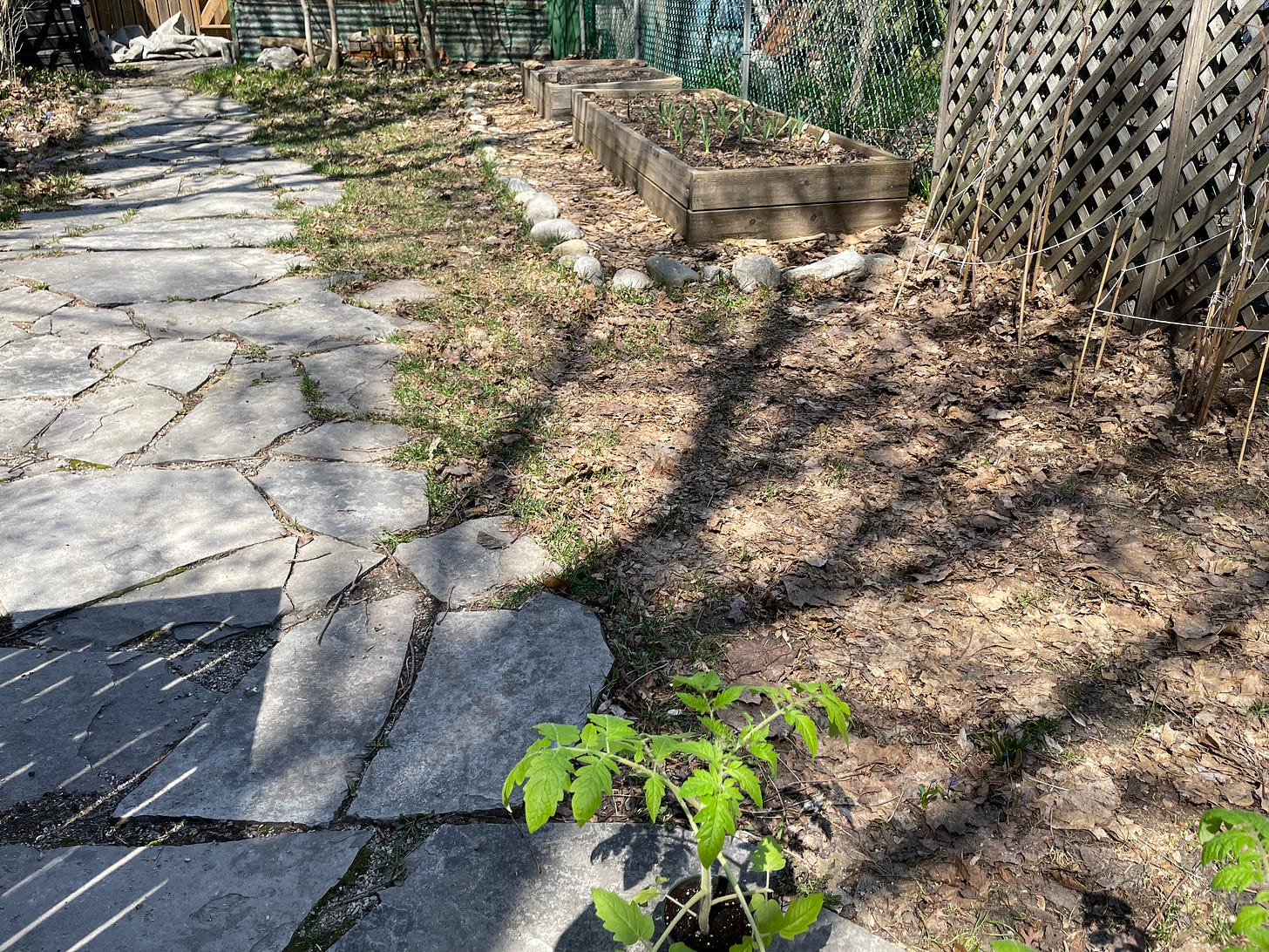 Hello from the yard on this, the one day Toronto weather permits using it. I try to be sure to use the yard because of how much of life revolves around the mortgage that makes it possible, so it seems a shame not to. It is also a kid home sick but not that sick day, and outside is—again, in this precise weather—a plus.