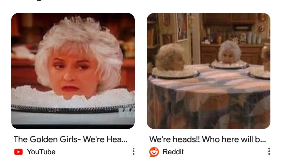 I also have these dark thoughts about how any of my not immediately needed organs that could go malignant should be chucked asap, leaving me like a disembodied defrosted head from one of those last Golden Girls episodes.